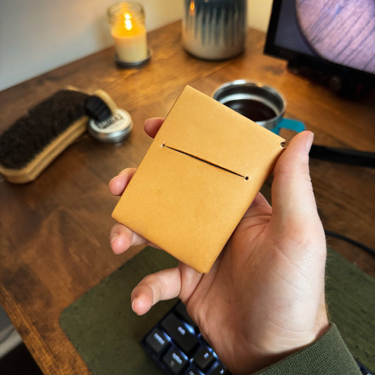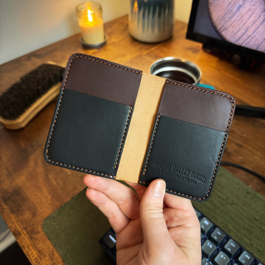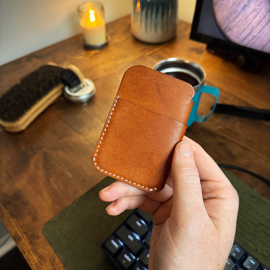 All of these wallets are ready to ship! Pick the model you like then look through the available colors and unique leathers available! These get shipped out next day (M-F) so you can have your wallet in just a few days! Not seeing something you want? Check out my made to order wallets to pick your favorite color of Minerva leather and thread or contact me if you want something made with a unique leather like Shell Cordovan, Buttero, or something else!