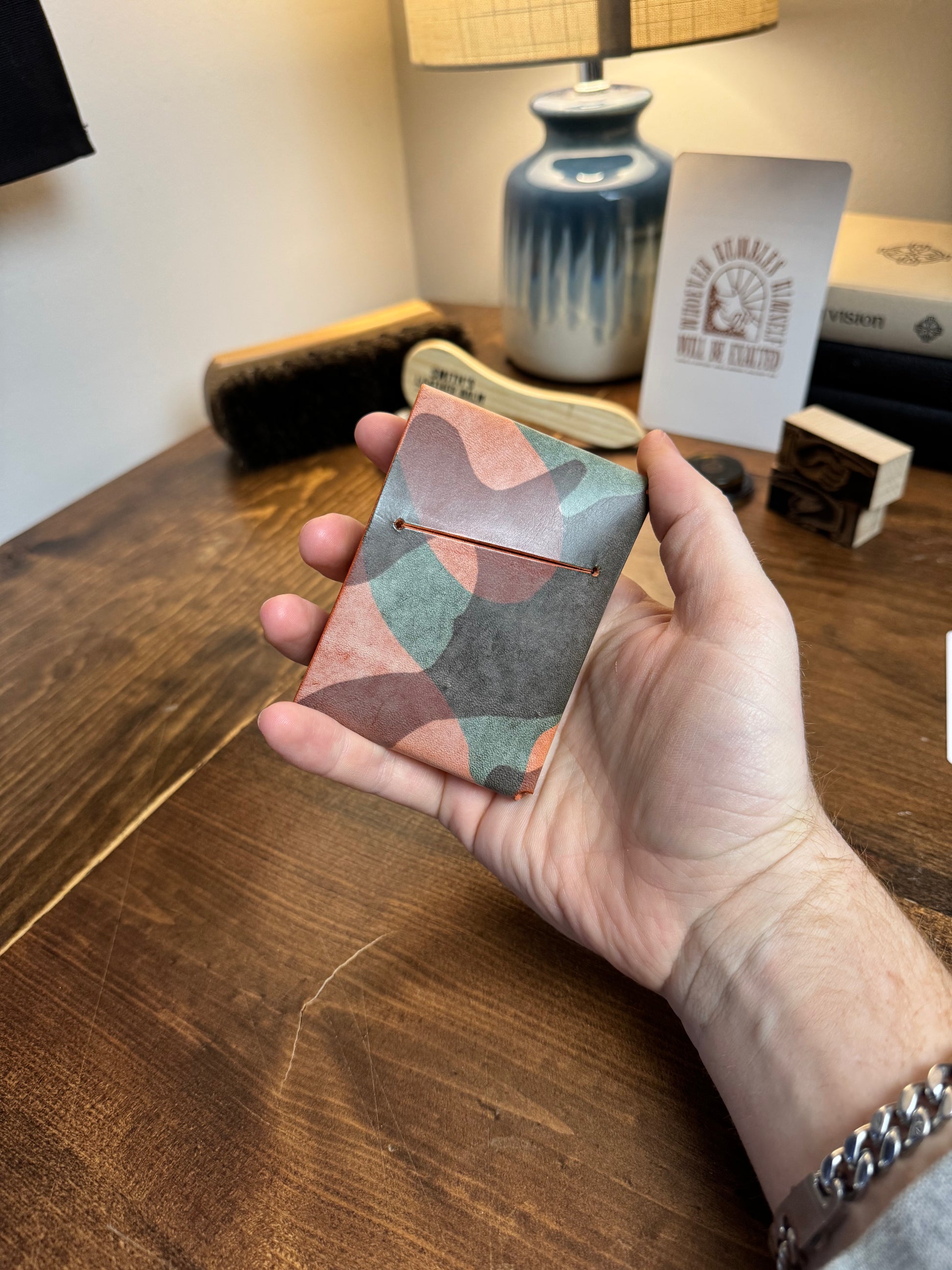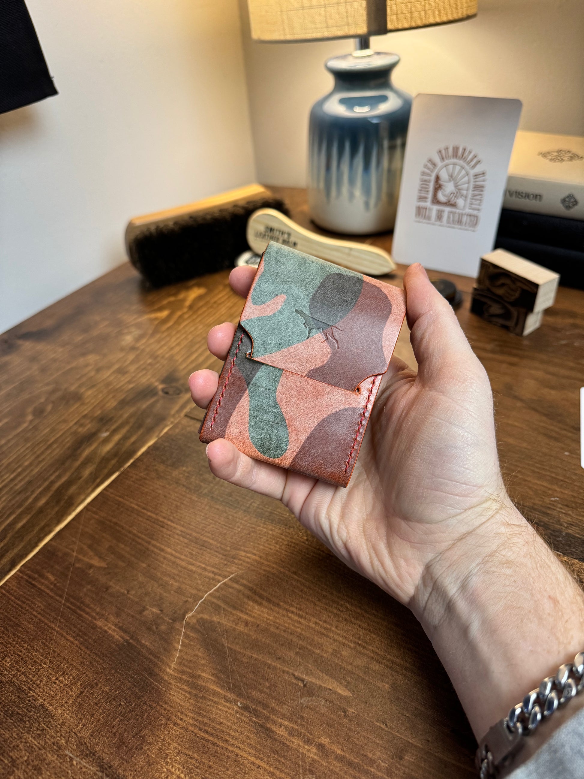 My flagship wallet in Ghost Red Camo leather. This leather has a thin coat of white wax that will wear away over time to expose a vibrant red camo beneath. The result is a unique patina that is as unique as you!